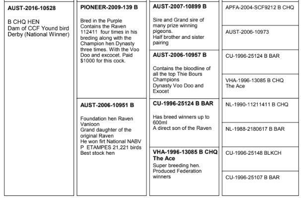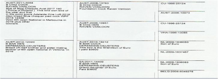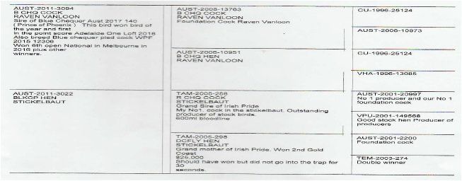 A number of winners came out of last years sales including one pigeon sold to the Tea and coffee syndicate Perth. entered in the Gold Coast 50,000. Won fith prize $10,000 called bussell.