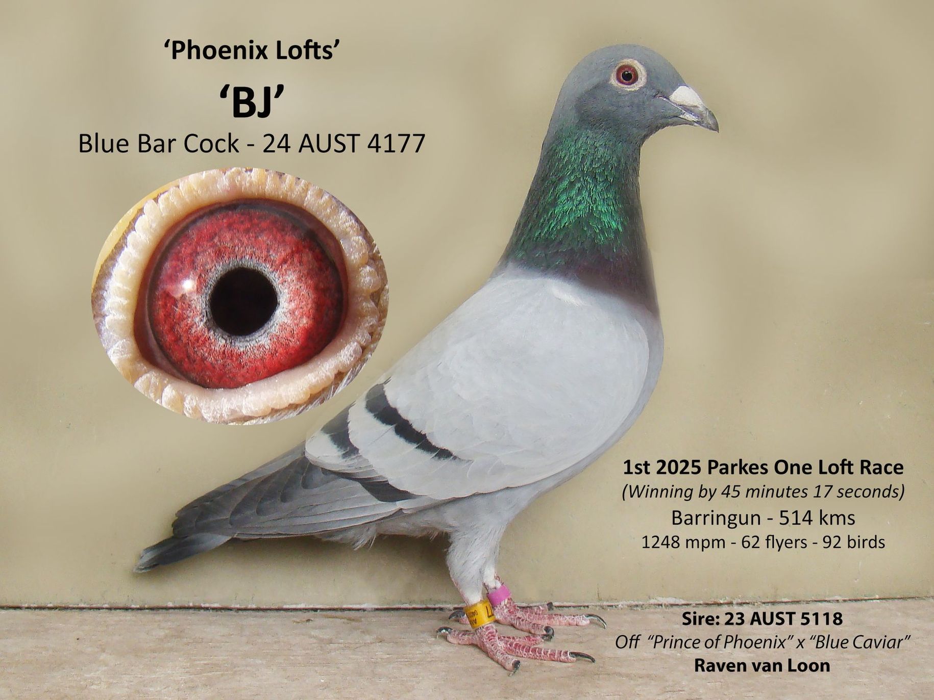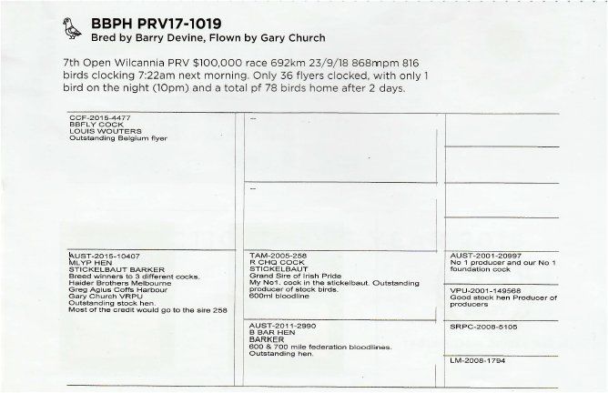 Plus 6th open Melbourne National 2016 for Simon Greach. 12 hour fly. Only 71 home on the day out of 2800 pigeons!. Bred by Phoneix Loft.