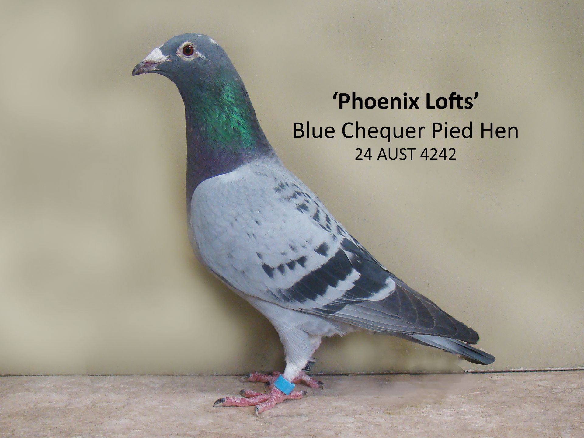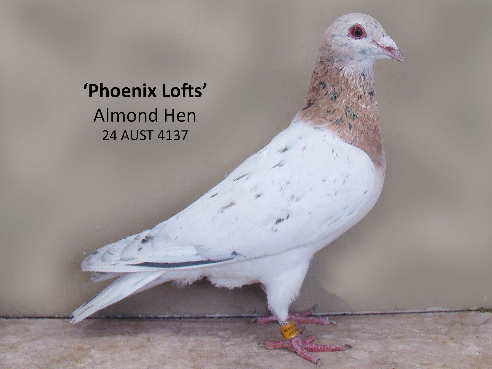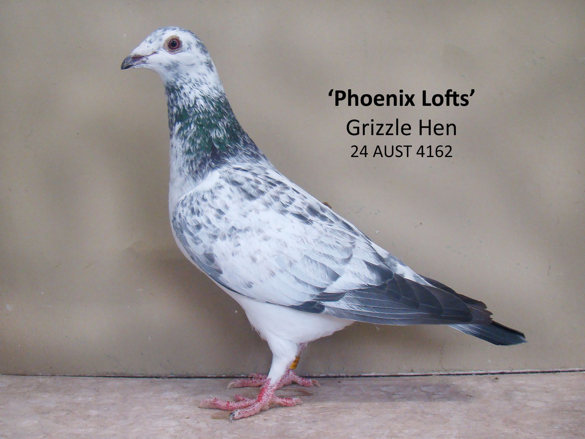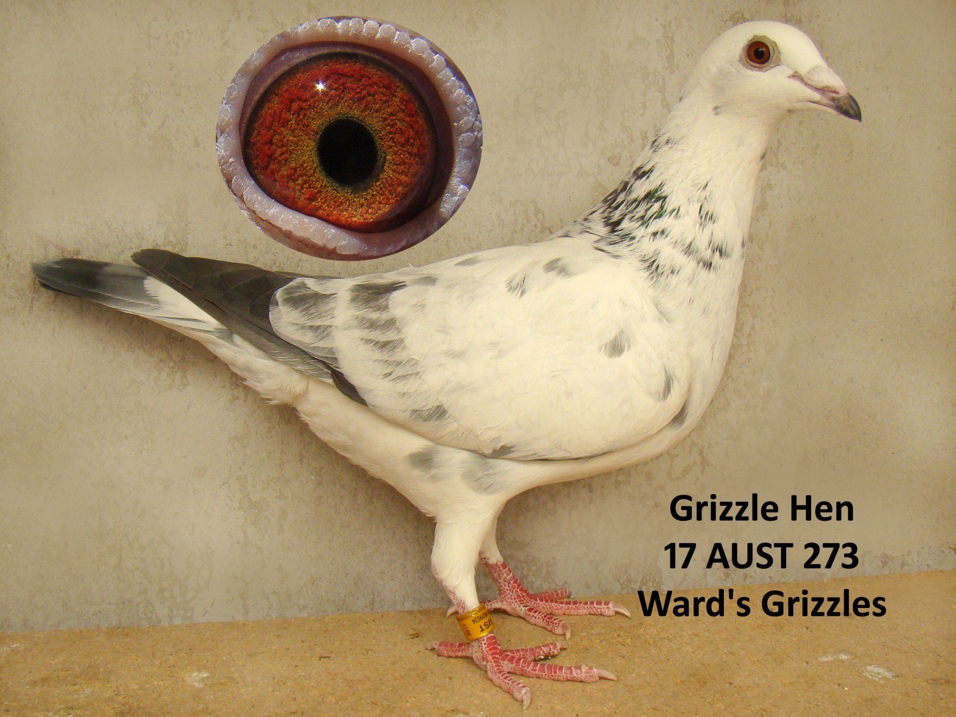 The snowy Ward Grizzles I have had for over 10 years. I have made them into a very unique family. I have been able to keep them together without them loosing their vigor and type. I have sent them all over Australia with great results. Mainly from 500km to 1200km. Good hard day pigeons and very reliable.